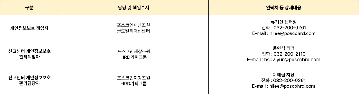①포스코인재창조원 홈페이지는 사이버신고센터 이용을 위해 필요한 최소한의 개인정보만을 수집합니다.